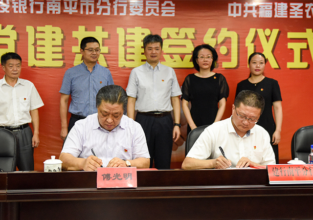 2018年7月18日,圣农公司党委与建行南平分行党委签订《党建共建协议》,双方将以党建共建为抓手,携手推动光泽县乡村振兴。在实施产业帮扶的基础上,扎实推进金融助力乡村振兴,用金融活水润泽广大乡村。