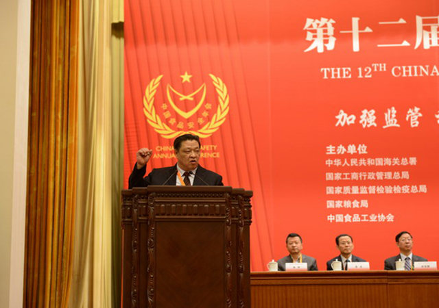 10月18日,第十二届中国食品安全年会在北京隆重召开,圣农发展股份有限公司董事长傅光明,在全国人大常委会副委员长陈竺、全国政协副主席齐续春等中央领导以及国家食品药品监督管理总局、环境保护部、农业部、国家工商总局消保局、国家粮食局、国家发改委产业司、国家质量监督检验检疫总局、海关总署监管司、中国食品工业协会负责人和中央电视台、光明网、人民网、新浪网等各大主流媒体的见证下,在庄严的人民大会堂,带领与会的一百多位著名食品行业企业家庄严宣誓:始终坚持科学发展,忠诚履行社会责任;坚决遵守法律法规,严格执行规范标准;积极配合政府监管,主动接受社会监督;建立健全诚信体系,执着追求高端品质;模范践行职业道德,自觉固守行业自律;矢志确保食品安全,共铸美丽“中国梦”。